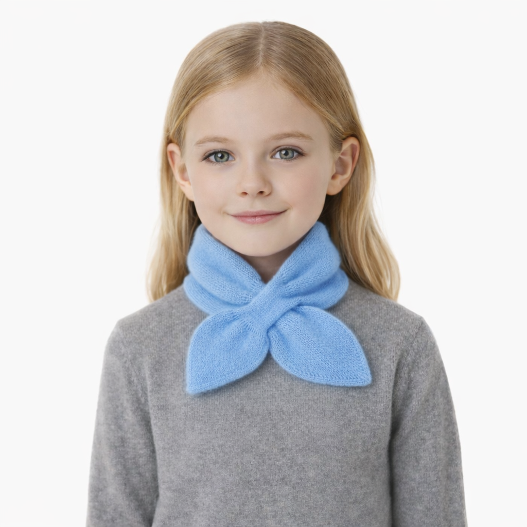 Ši vaikiška puošni kašmyro kaklaskarė saugo nuo vėjo ir šalčio, išlaikydama estetišką ir tvarkingą išvaizdą. Subtili peteliškės forma suteikia stilingą akcentą ir lengvai dera prie paltukų, striukių ar megztinių. Puikus pasirinkimas šventėms, kasdienai ar ypatingoms progoms.
